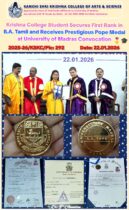 Kanchi Shri Krishna College serves the rural area through excellent education facilities, In addition, NAAC an autonomous institution, established by the UGC, at Bangalore has accredited this college with “B Grade” Level which is the first and only college to obtain this status in Kanchipuram Region on 28, March 2008 and reaccredited with “B Grade” in 2014 with Good Quality Education. In the year 2011, BMQR Certification ltd, Certified our institution as an ISO 9001:2008 based on the quality of our academic and administration systems. In the year 2013, UGC New Delhi, Recognized our college under section 2(f).