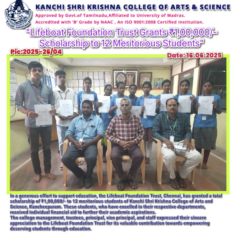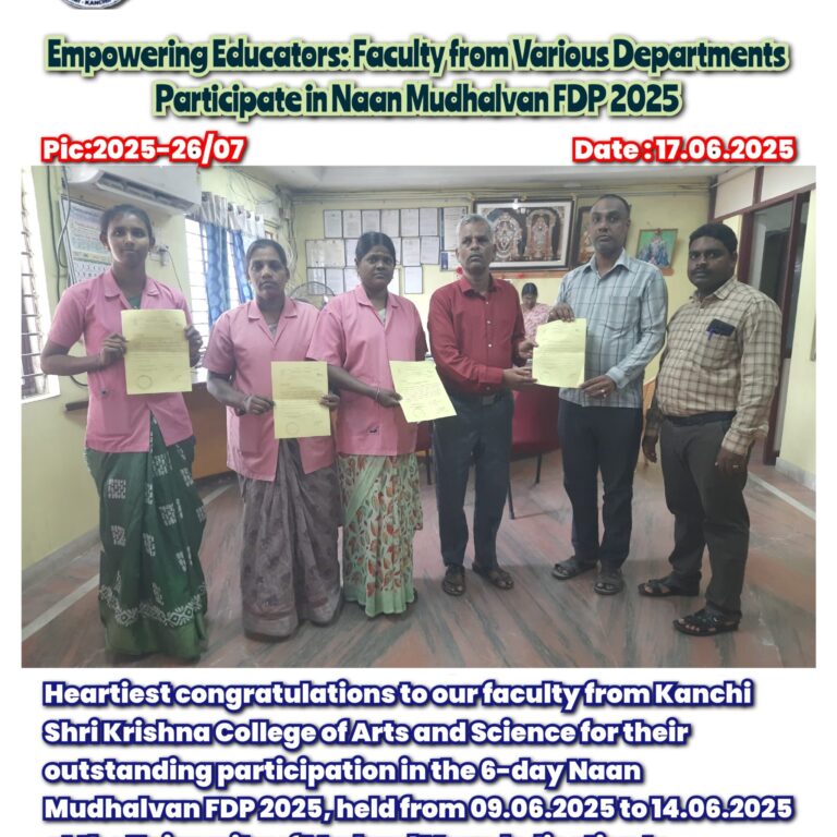 The Kanchi Shri Krishna Alumni Association fosters a lifelong spirit of belonging and pride by connecting alumni, students, and friends to the Kanchi Shri Krishna College of Arts and Science and each other. The Alumni Association advocates for the college and its alumni with a credible, independent, and collaborative voice.