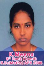 In accordance with the valuable guidelines being given by our Management and by the Principal of this college a good standard of Education as being provided to our students in Mathematics there by the following students have got university Rank.
